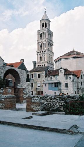 Här syns delar av väggar som bildat en klöverformad samling rum i palatset.