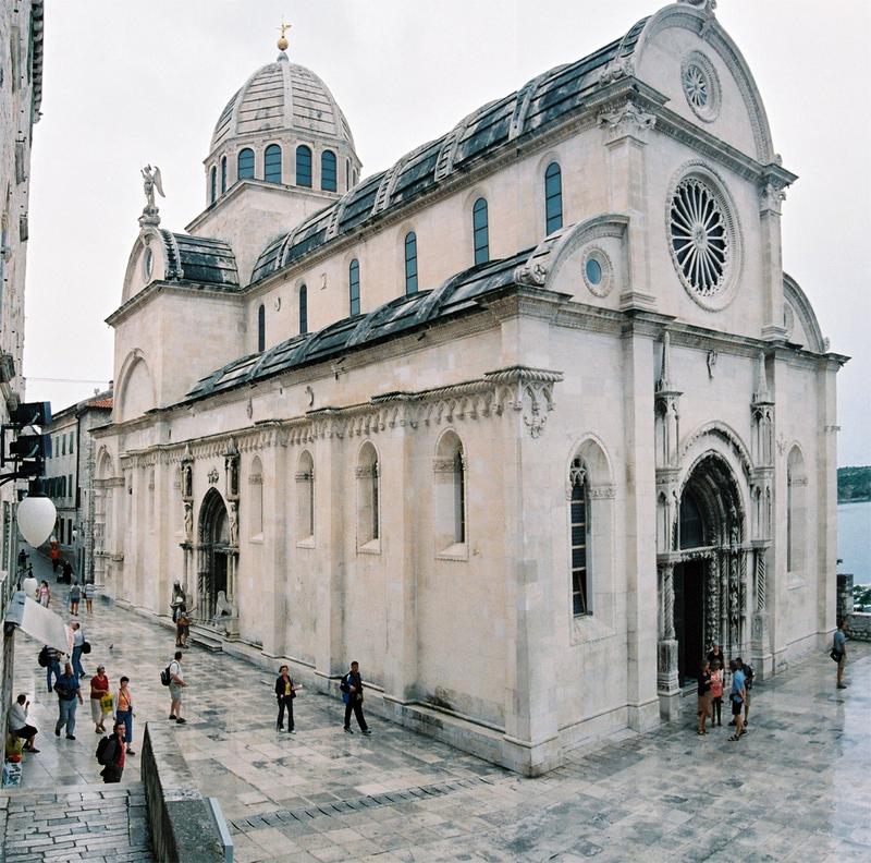 Katedralen Sv. Jakova i ibenik. Gatstenar av marmor omkring.