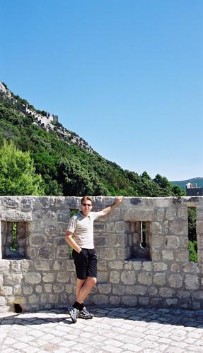 Tobias på muren. Notera hur den klättrar vidare upp på berget.