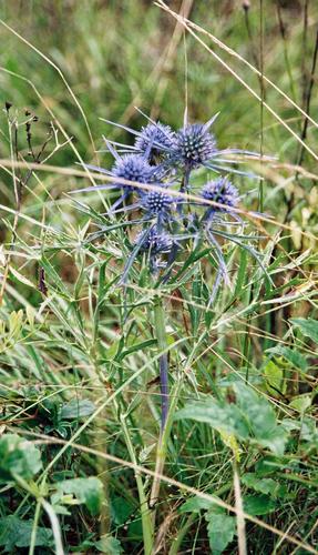 Vacker tistelliknande växt som det växte gott om vid en rastplats i Slovenien.