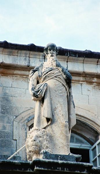 En av statyerna på katedralens tak. De venetianska lejonen dyker upp lite här och var och påminner om forna tiders "kulturella utbyte".